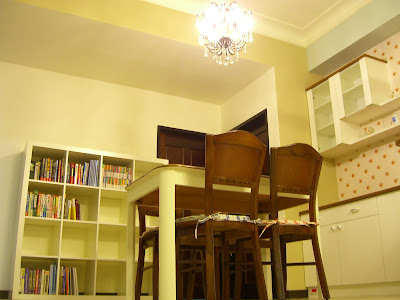 雖然客廳的舊茶几有點破壞氣芬,但這不成問題,改日以一塊緹花布遮住再稍加以修飾即可!!